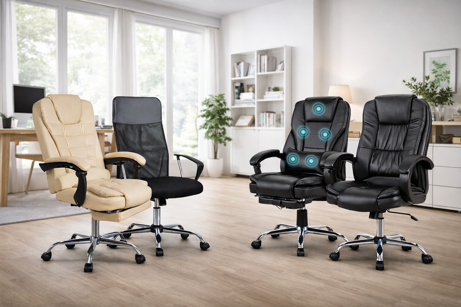Scaun de birou ergonomic cu masaj Premium, confortabil şi elegant, de culoare neagră